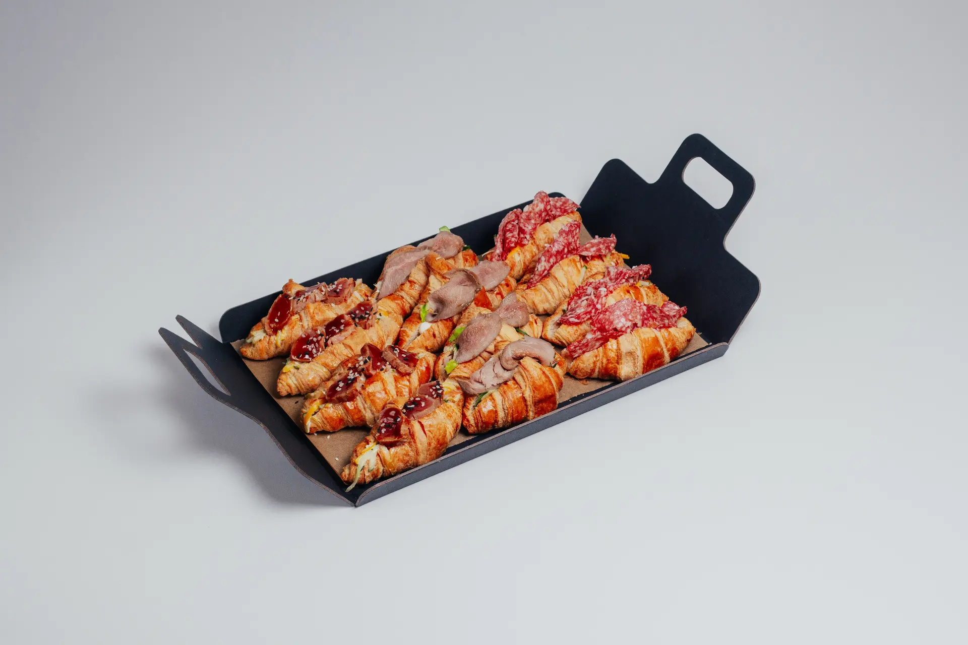 Эклеры с ростбифом, курицей и креветками превращают классику в гастрономическое искусство — нежное и праздничное. Прекрасный выбор для сопровождения банкетов, свадеб и изысканных фуршетов.