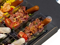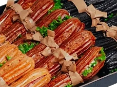 У нас вы можете заказать готовые блюда для банкета с доставкой на любой вкус. Нам важно каждое мероприятие, поэтому мы ответственно подходим как к праздникам для небольшого круга людей, так и к масштабным банкетам на несколько сотен человек. Разнообразие наших блюд позволяет сформировать меню на любой вкус: от детского дня рождения дома до деловой встречи в офисе. Также наше меню отлично подойдет для вечеринки или масштабного мероприятия, например на Новый год. или свадьбу. Вы можете дополнить стол следующими блюдами: