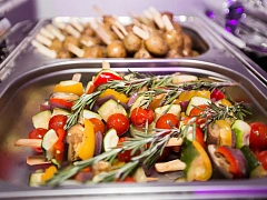 Все блюда готовятся на нашем собственном производстве, оснащенном самым современным оборудованием. Мы используем только свежие продукты, их высокое качество и безопасность подтверждены сертификатами. Все блюда приготовлены без усилителей вкуса и химических красителей. Мы сервируем столы в соответствии принятыми нормами и готовы помочь вам в дополнительном оформлении. Мы можем украсить ваш банкет флористическими композициями или стилизовать его соответственно тематике и атмосфере вашего события. Все это сделает ваше мероприятие незабываемым!