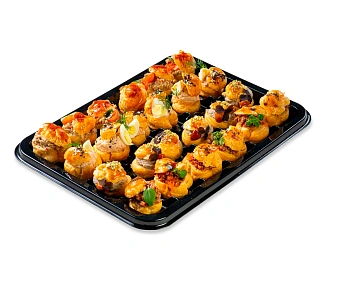 Сейчас без этих крохотных закусок не обходится ни один фуршет. На нашем сайте выбор канапе довольно большой, мы рекомендуем заказать на мероприятие изысканные канапе с индейкой и ананасом фламбе, канапе из тунца «Блюфин» с бальзамиком и клубничным мармеладом, а также канапе с пряным ростбифом на облаке из ликера «Блю Кюрасао» и сыра «Рокфор».