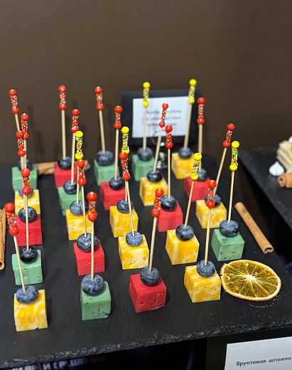 Изысканный выбор для ценителей морепродуктов: тарталетки с лососем, креветками, паштетом из тунца, мини-салаты с кальмаром и лимонным соусом. Такой вариант добавит мероприятию лёгкости и премиального вкуса.
