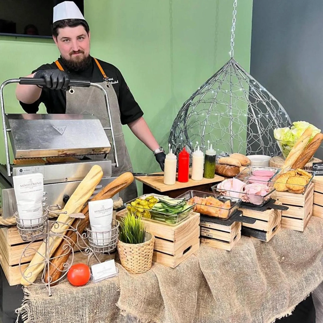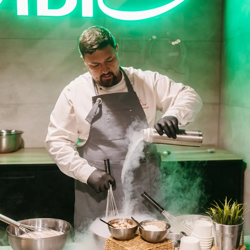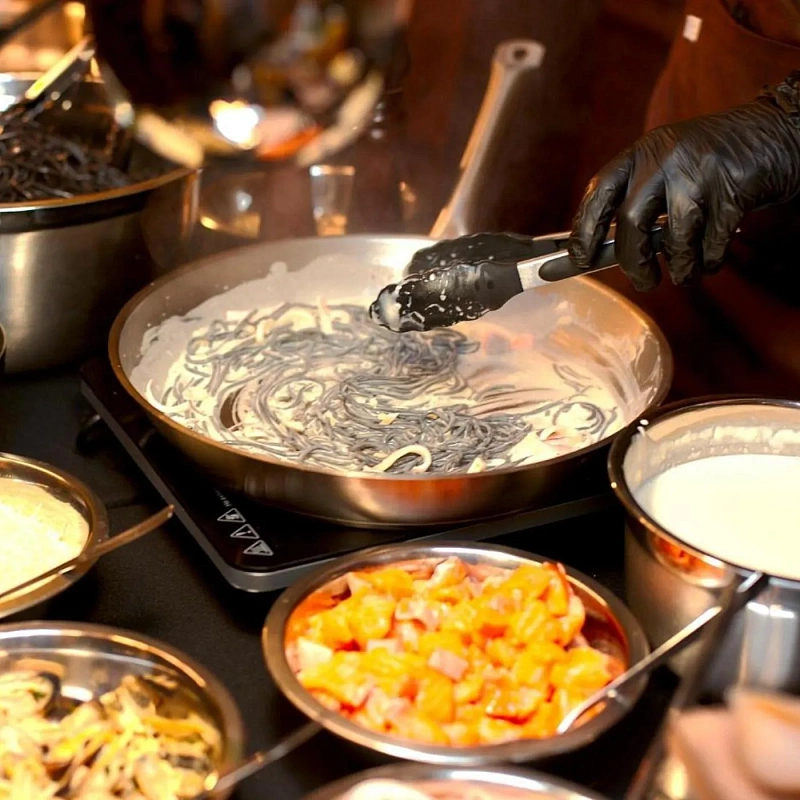 Чтобы впечатлить всех коллег, можно заказать наборы авторских десертов. Но есть более оригинальное и современное решение. Можно заказать настоящее кулинарное шоу, оформив аренду гастростанции на выбор: wok станции с рисом или например с холодными закусками, для гурманов подойдет станция с приготовлением буженины. На глазах всех присутствующих шеф-повар приготовит свое фирменное блюдо и пригласит к дегустации. Это станет одним из самых запоминающихся моментов во время вашего новогоднего корпоратива. А еще – можно устроить настоящий кулинарный мастер-класс, чтобы Новый год начался с новых знаний и умений.