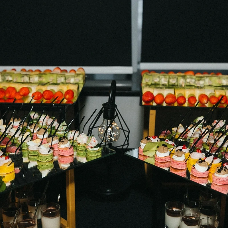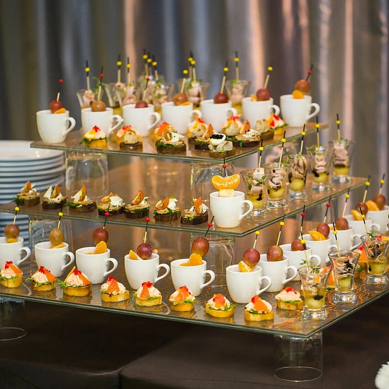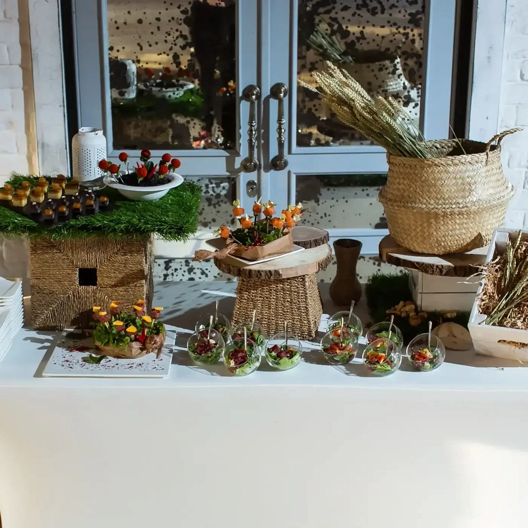 Главный вопрос при подготовке — сколько еды нужно. В среднем на одного гостя приходится 6–8 видов закусок и около 12–15 порций в мини-формате. Для 30 человек это примерно 360–450 закусок в совокупности. Дополнительно стоит предусмотреть сладкий стол и напитки. Баланс меню важен: мясные и рыбные закуски должны сочетаться с овощными и фруктовыми позициями, а десерты завершат общее впечатление.