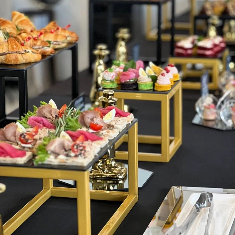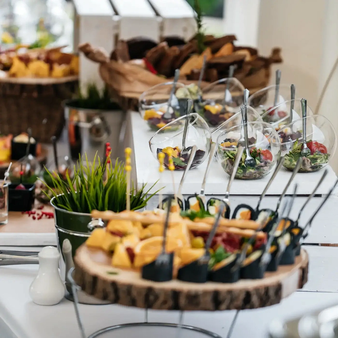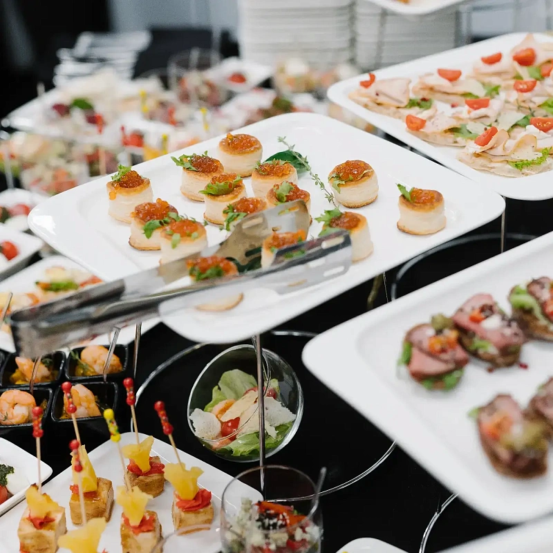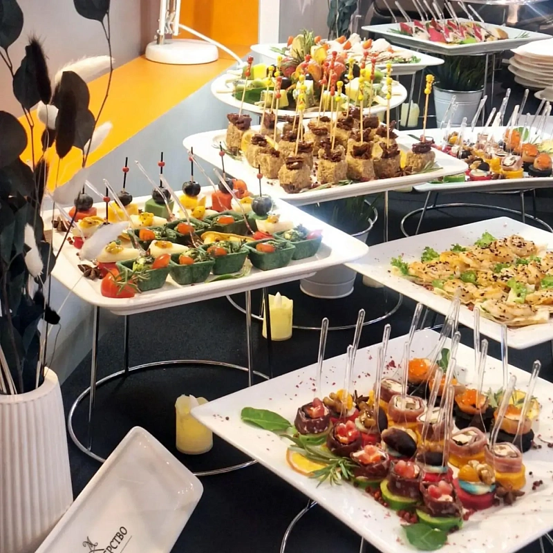 Фуршет — это универсальное решение, когда хочется совместить угощение и свободное общение гостей. Для компании из 30 человек он особенно удобен: не требуется рассадка за столами, еда подаётся в удобном порционном формате, а гости могут выбирать блюда по вкусу. Обслуживание при этом проще и быстрее, чем на классическом банкете. Такой формат одинаково хорош для офисного корпоратива, семейного торжества или делового мероприятия.