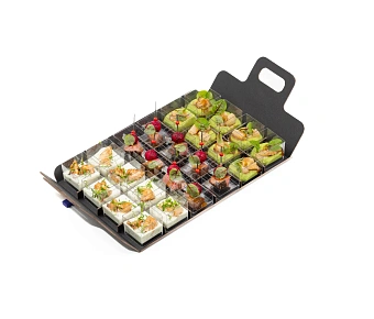 Как правило, наборы еды для фуршета поставляются в стильной, удобной и практичной упаковке — открыли и сразу подаете к столу. Не нужны тарелки, не нужно резать и раскладывать. Посуду и приборы вы можете взять в аренду, если необходимо или запастись одноразовой посудой.