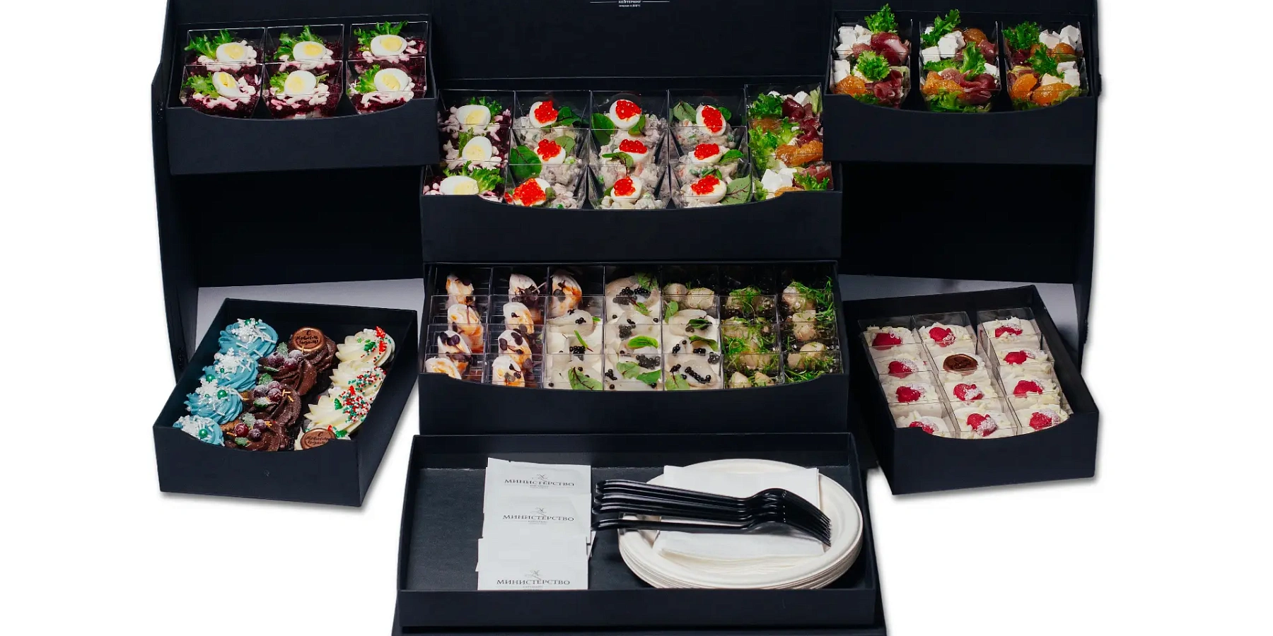 Для офиса - фуршетное меню, наборы с канапе и закусками, мини-салаты и десерты