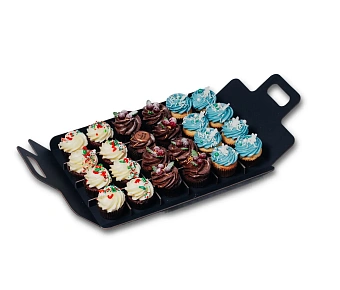 Закуски из морского гребешка, трески, куриных рулетиков, "Сельдь под шубой", "Оливье", салат с уткой. Новогодние капкейки: ванильные, шоколадные, красный бархат и десерт "Сметанник"