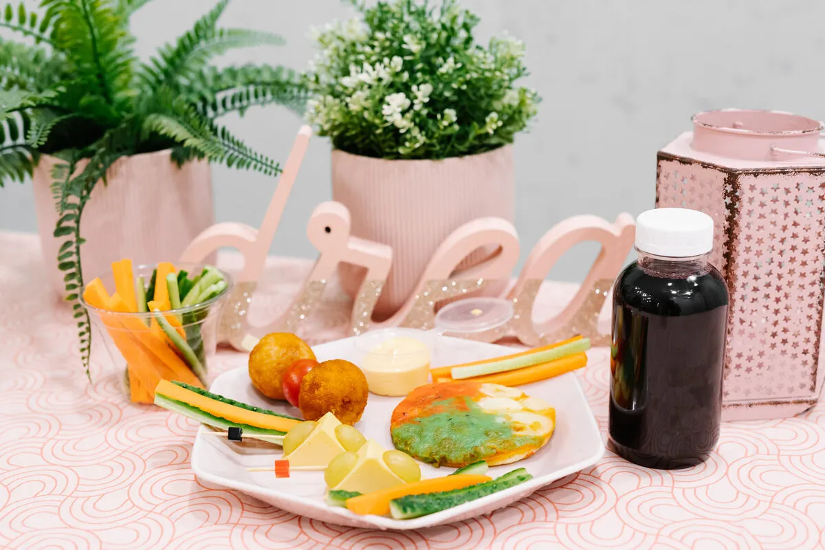 Яркая пицца с тремя видами сыра, хрустящие овощные палочки и куриные мячики не оставят равнодушными ни одного гостя.