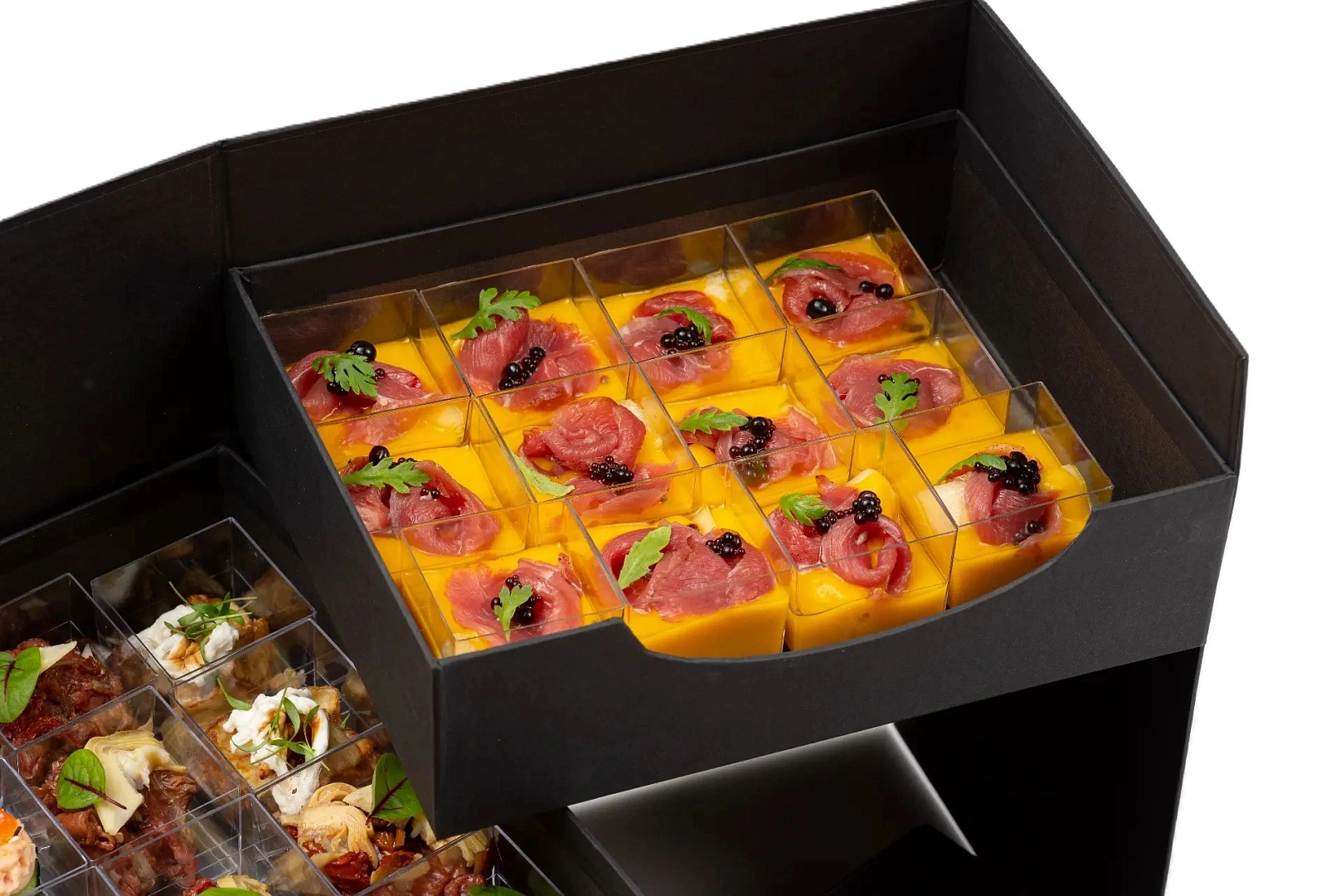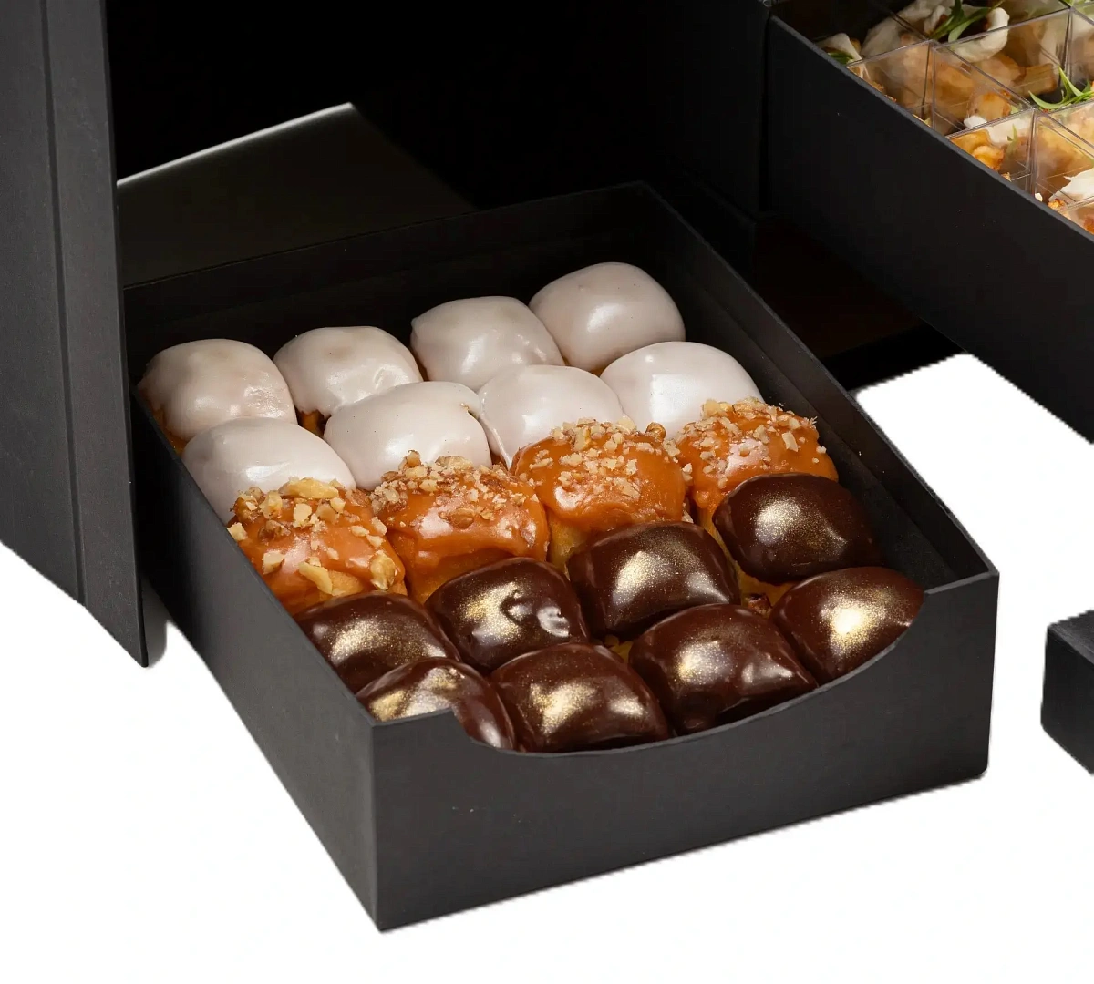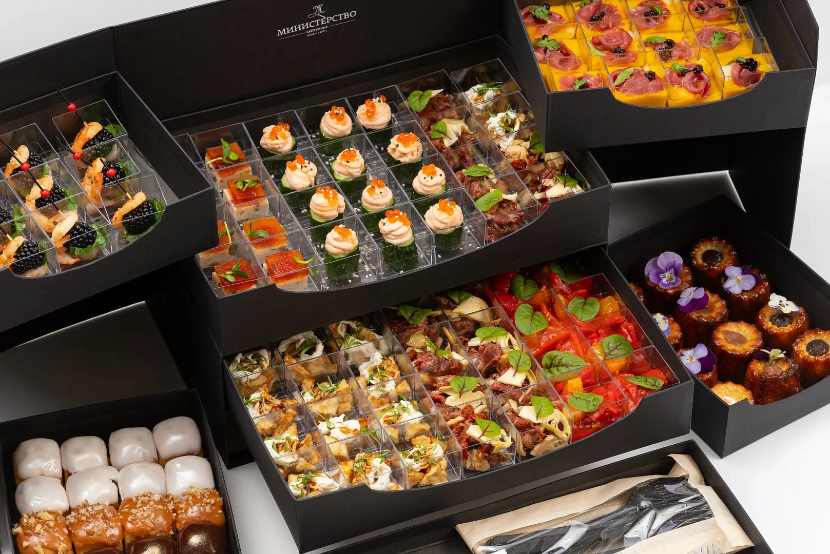 Воплощение гармонии и изящества. Здесь нет лишнего: только стройные рифмы вкусов. Канапе с кроликом, креветкой и лососем с икрой звучат как лёгкий ямб, веррины с уткой и манго или страчателлой и баклажаном создают многослойную поэтику. А десертное трио — канеле, ром-бабка и карамельная вариация — это уже «сладкая строфа», финал, где классика остаётся вечной.
