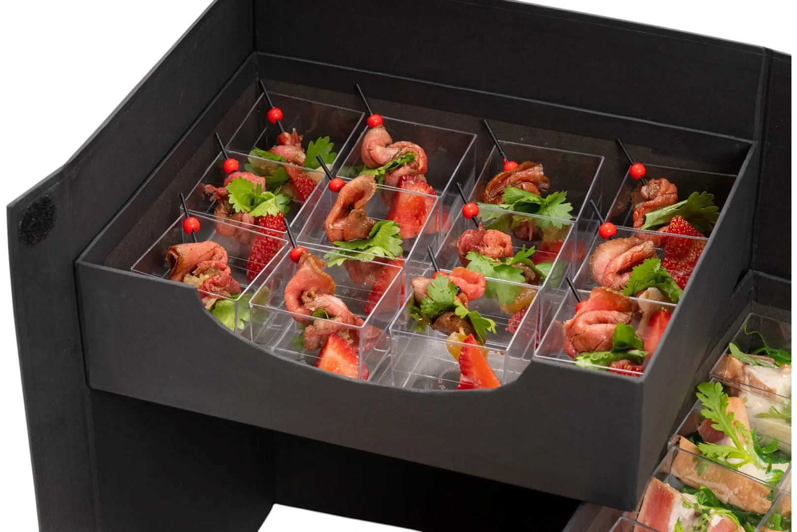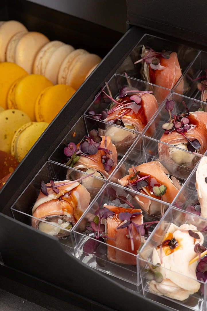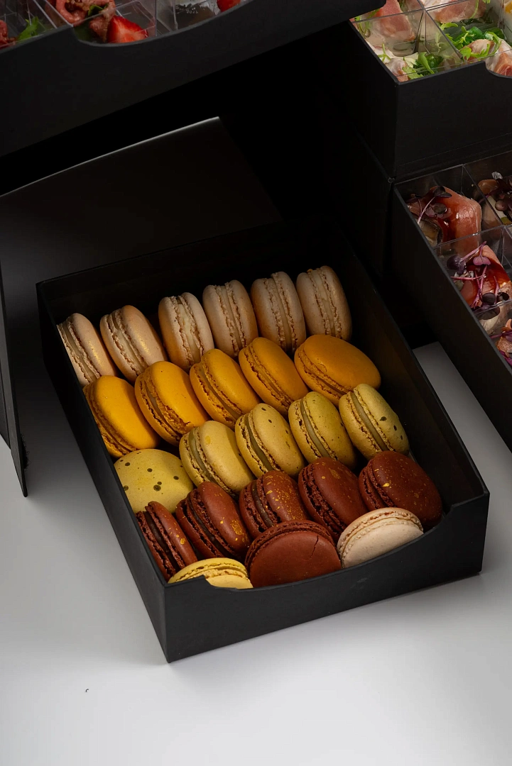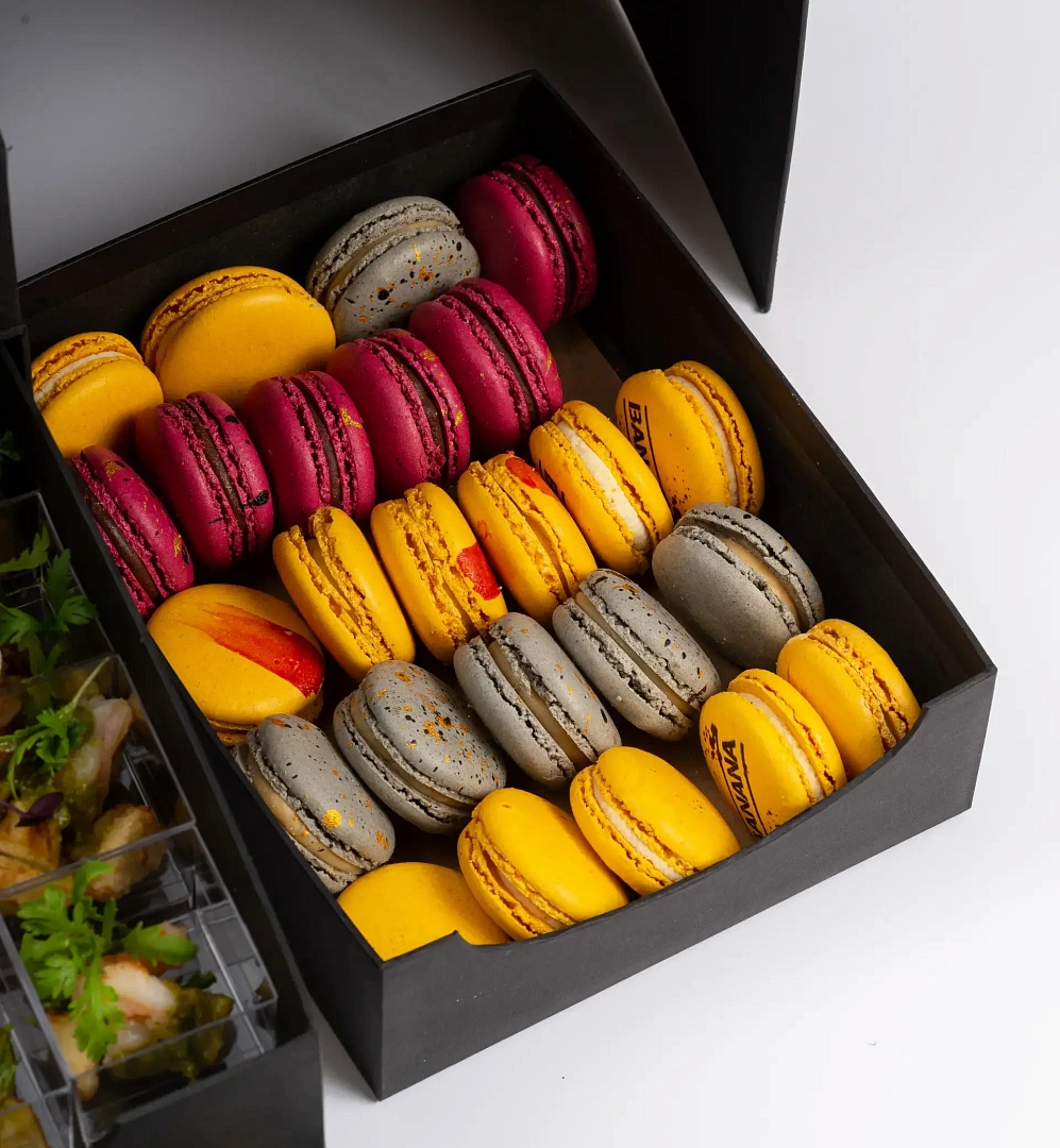 Изысканная коллекция, собранная для торжественных событий. Закуски-веррины становятся «картинами в миниатюре»: хамон с камамбером, тунец с чука, гребешок с икрой, креветки и куриные рулетики в лемонграссе. Канапе с телятиной, клубникой и имбирным мармеладом добавляют неожиданный штрих, как сказочный персонаж на полотне. А десерт «Макарон» завершает историю нежным цветным акцентом. Такой набор словно сказочное полотно, созданное, чтобы восхищать.