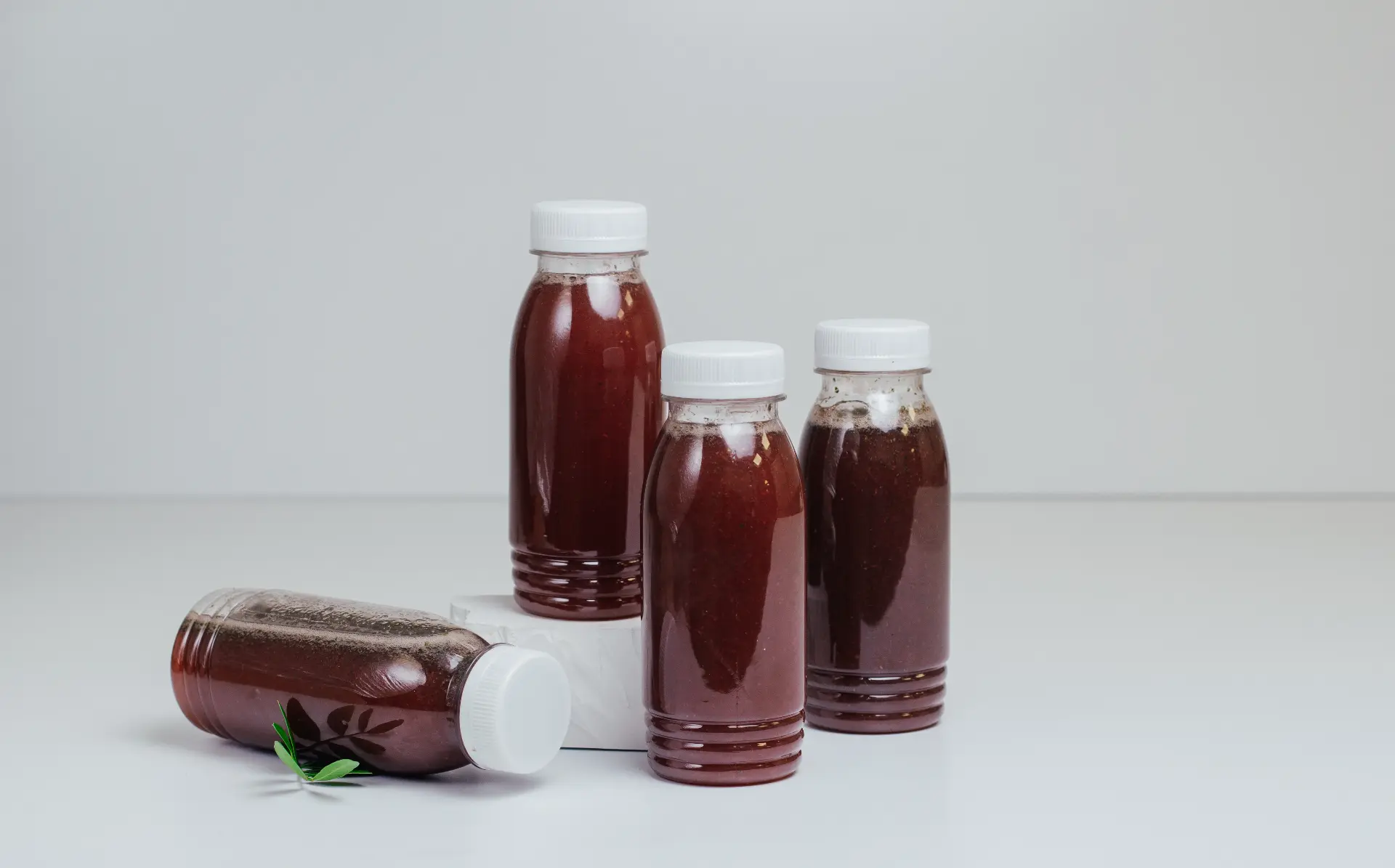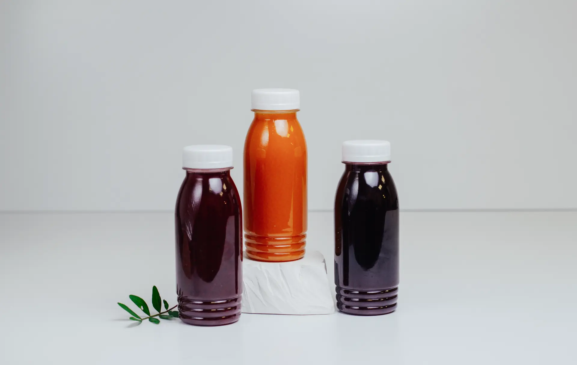 По 4 бутылочки 300 мл каждого вида: морс из клюквы, морс из облепихи, морс из чёрной смородины