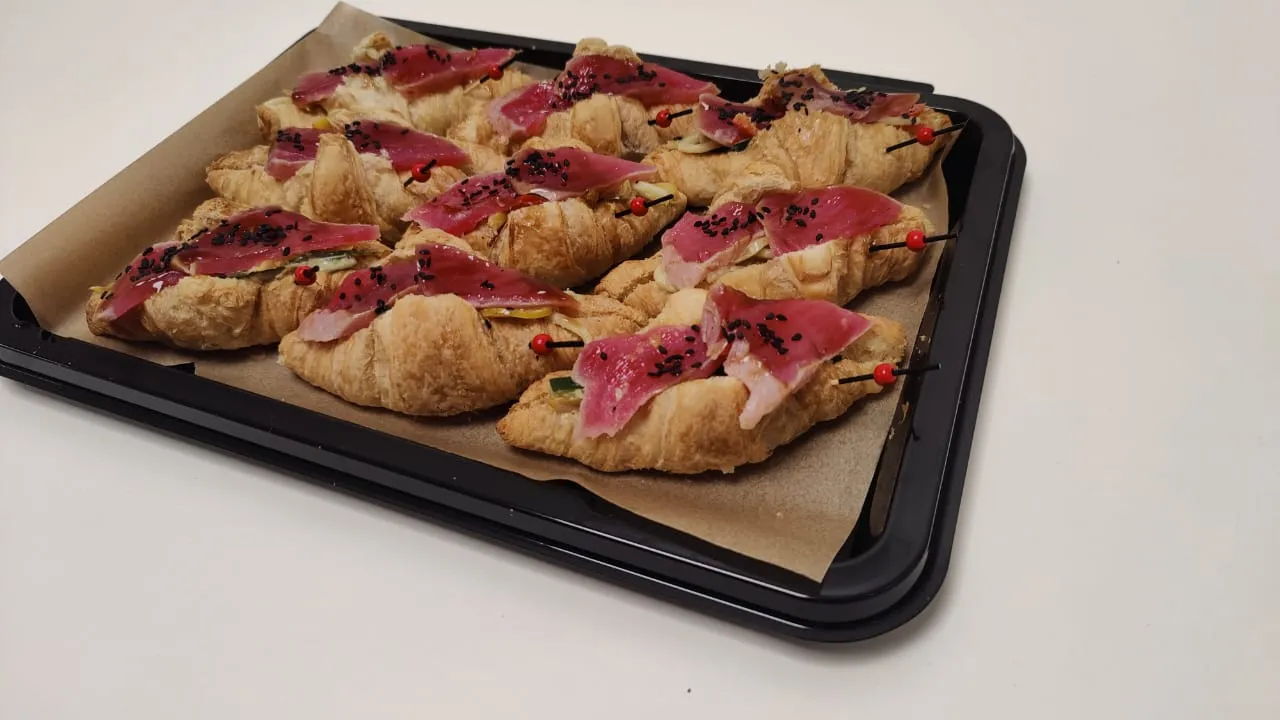 Мини-круассан с тунцом, устричным соусом и жульеном из свежих овощей (12 шт)