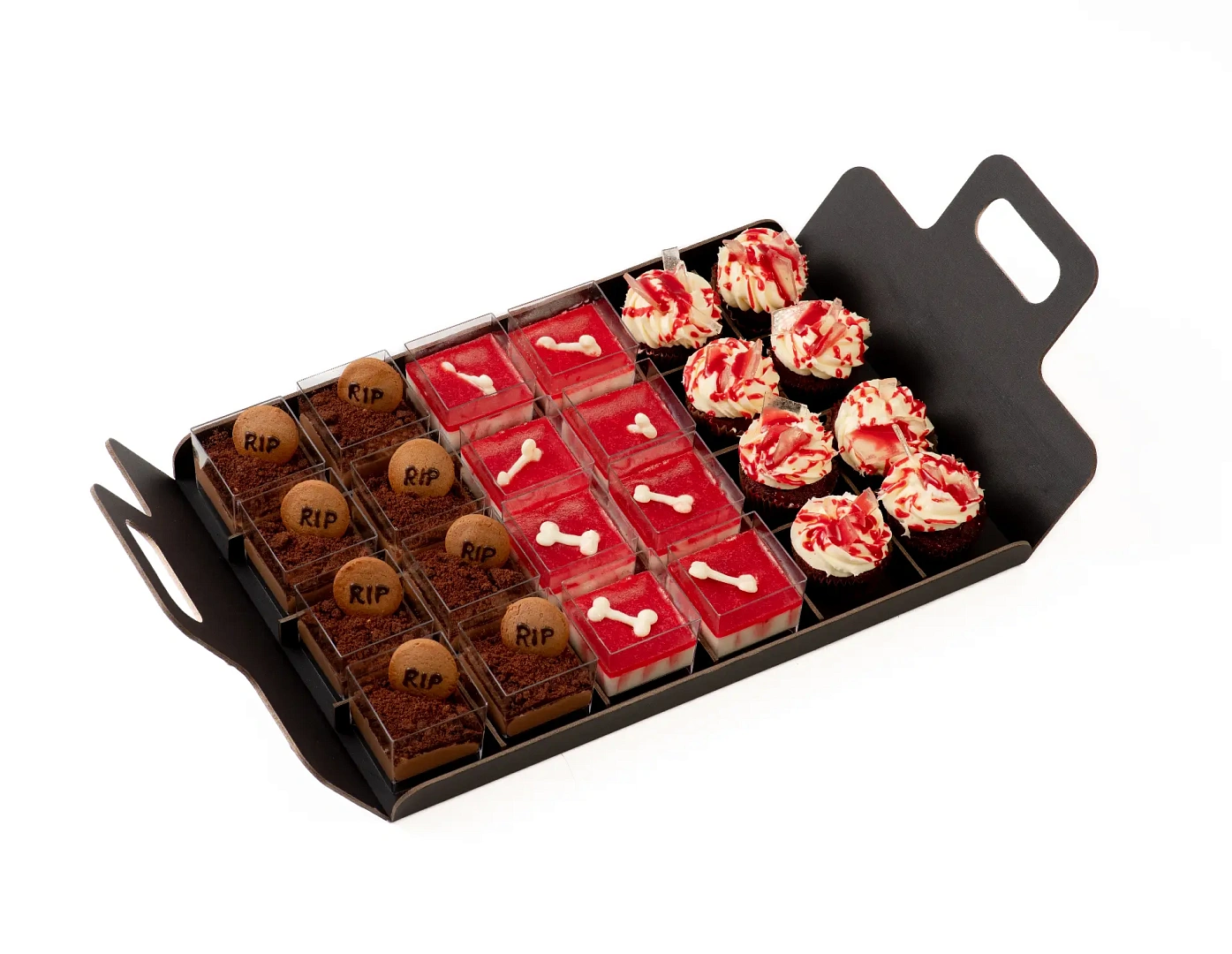 Отличный выбор для эффектной сервировки корпоративного фуршета, хэллоуинской вечеринки или арт-мероприятия с изюминкой.
