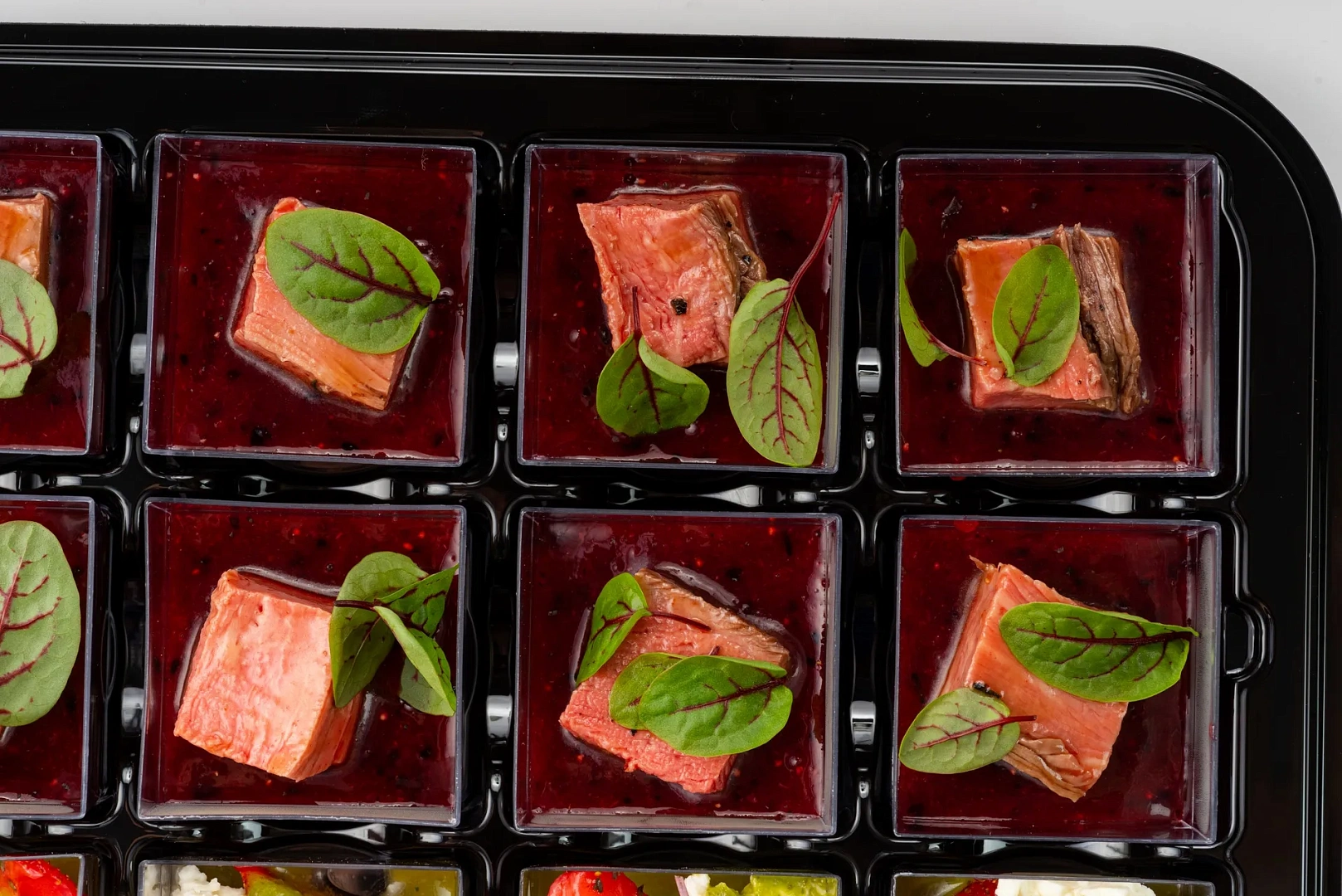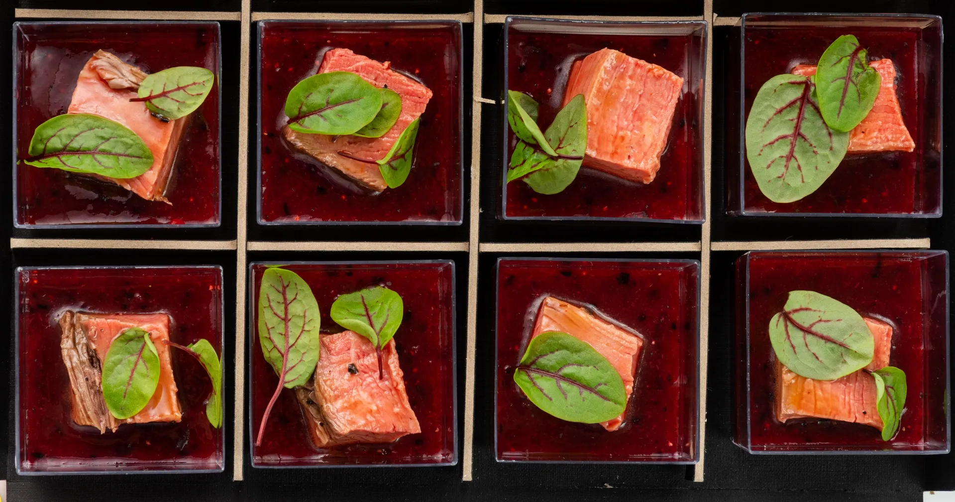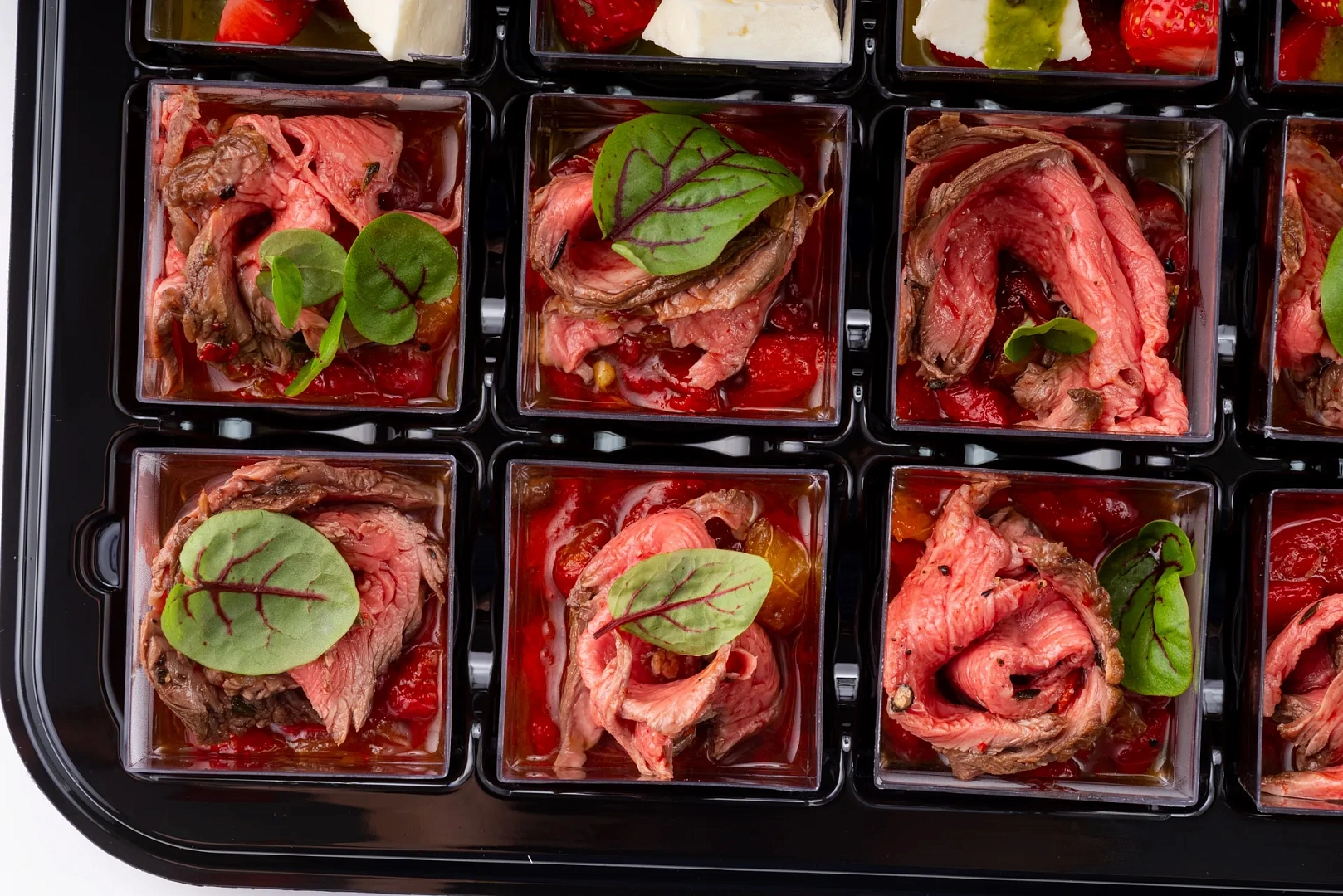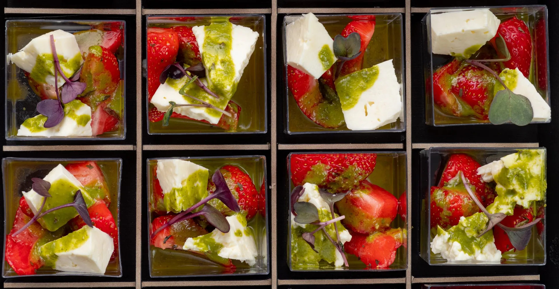 Говядина с аджикой, гаспачо и брынза с клубникой создают сет, где привычное соседствует с неожиданным — как сюжет гоголевской комедии. Отличный выбор для неформальных вечеринок и дружеских встреч.
