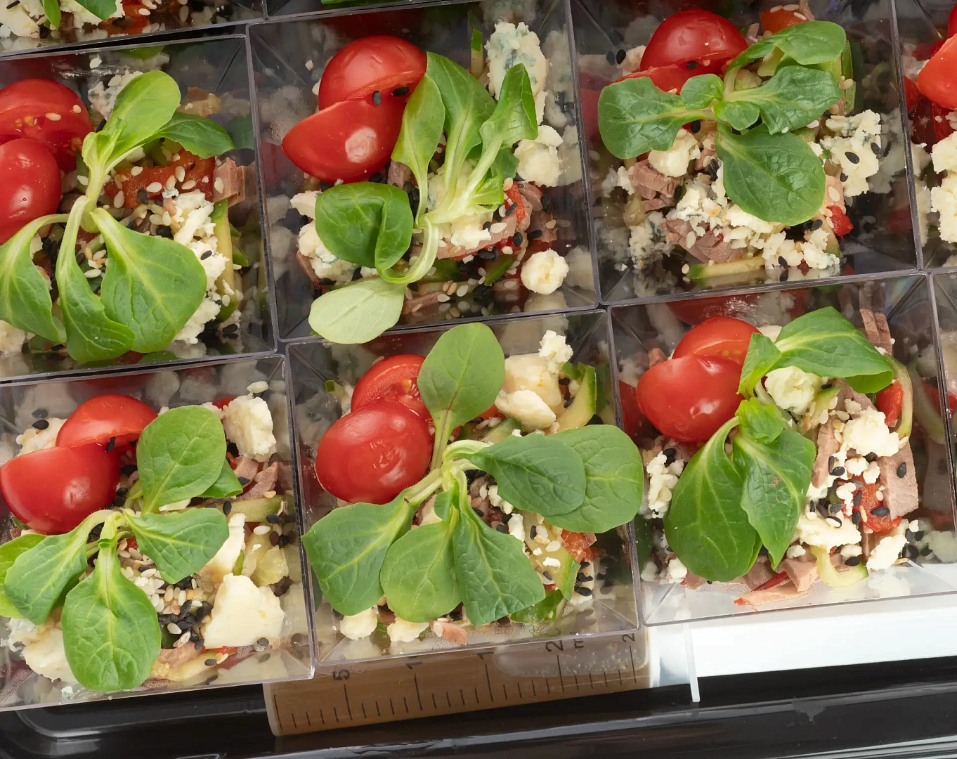 Мини салат с ростбифом, запеченным перцем и сыром "Горгонзола" (12 шт)