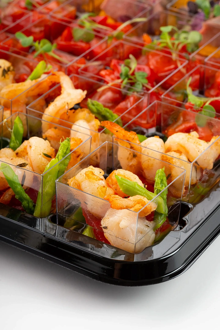 Премиальные закуски из чёрной трески, морского гребешка и куриные рулетики с мясом криля
