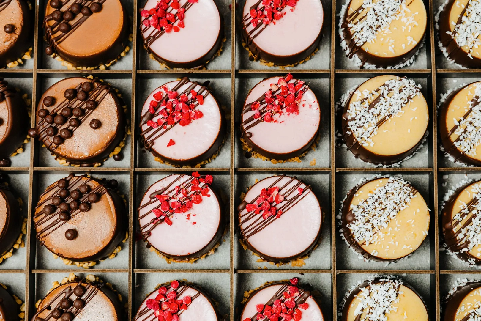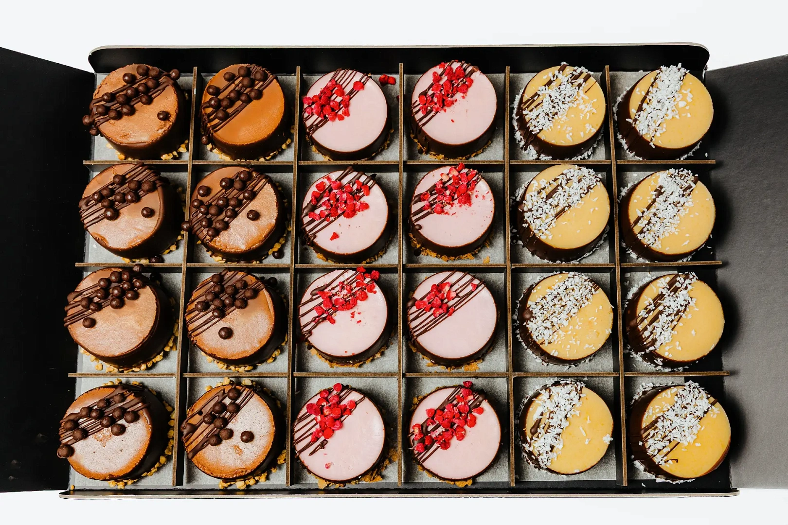 Манго, малина и шоколад формируют аккуратную палитру вкусов, сочетающую свежесть, сливочность и насыщенность. Современный сет с утончённым стилем.