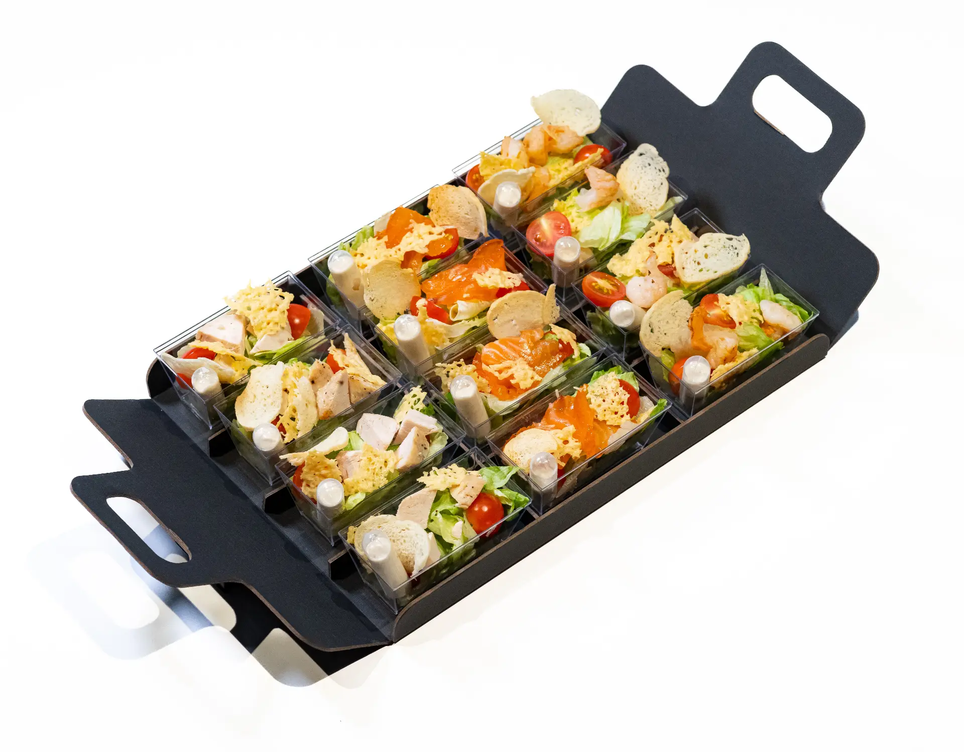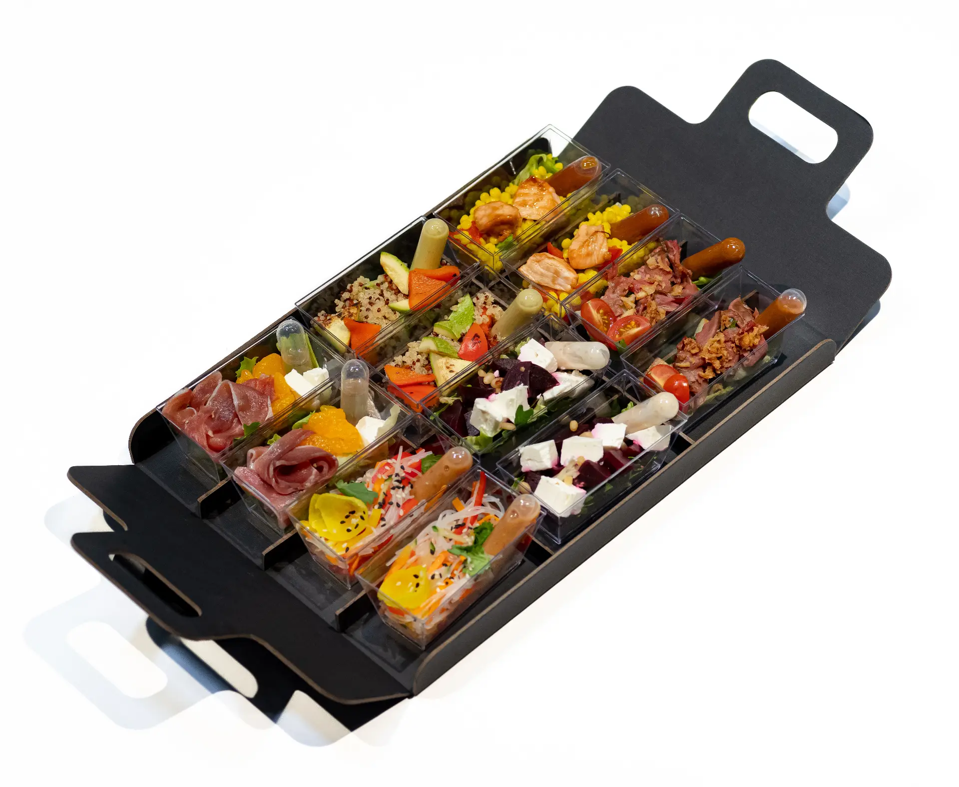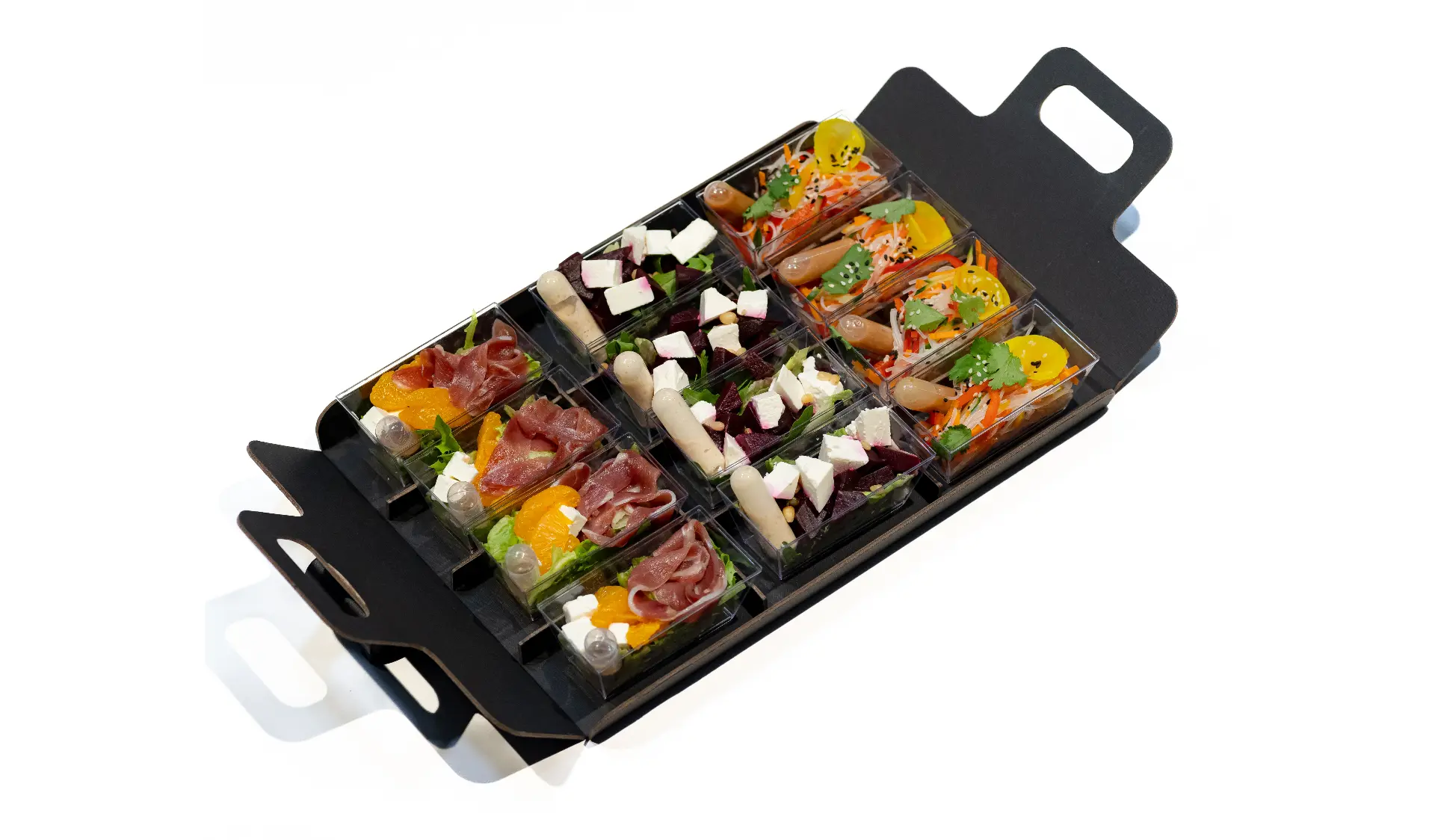 Овощи с киноа, говядина с бэби-картофелем и лосось с пастой птитим создают гармоничный и сдержанный ансамбль — строгий, но изысканный, словно портрет кисти Серова. Сет подойдет для бизнес-ланча или официального фуршета с акцентом на сытные, но изящные решения.