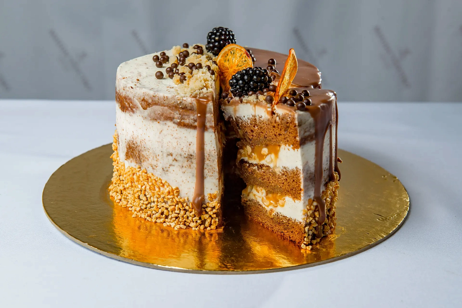 Плотный торт с начинкой "Сникерс" (карамель, арахис и нуга)
